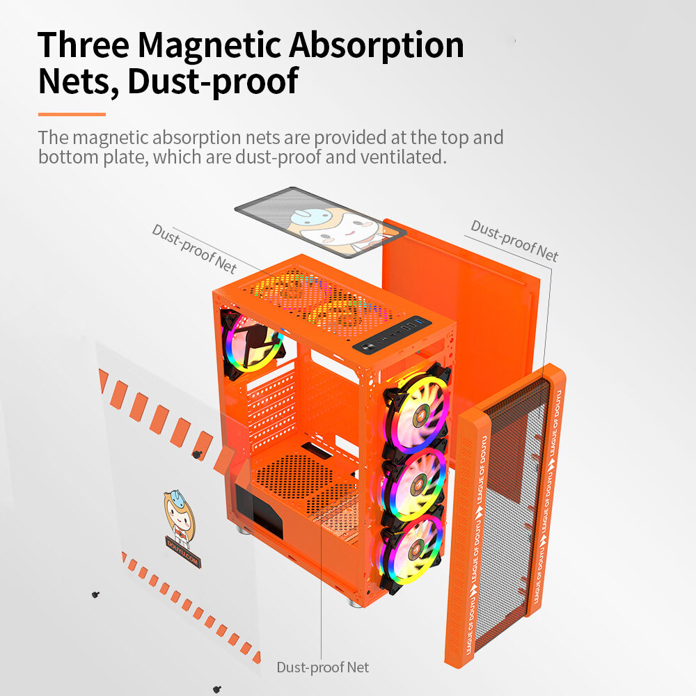 Three magnetic absorption nets are provided at the top and bottom plate, which are dust-proof and ventilated.