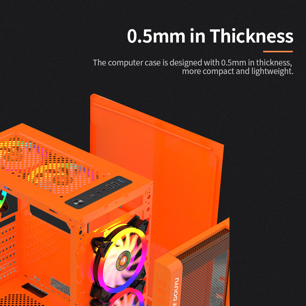 The computer case is designed with 0.5mm in thickness, more compact and lightweight.