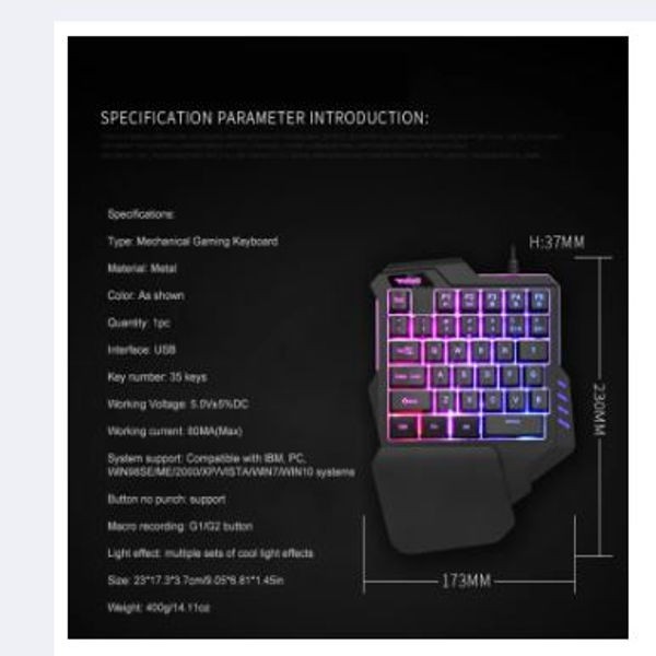 The keyboard uses a 35 keys portable design, its small size makes it not only easy to carry but also saves you space. The big wrist-res t and ergonomic design provide you with a relaxing gaming experience.