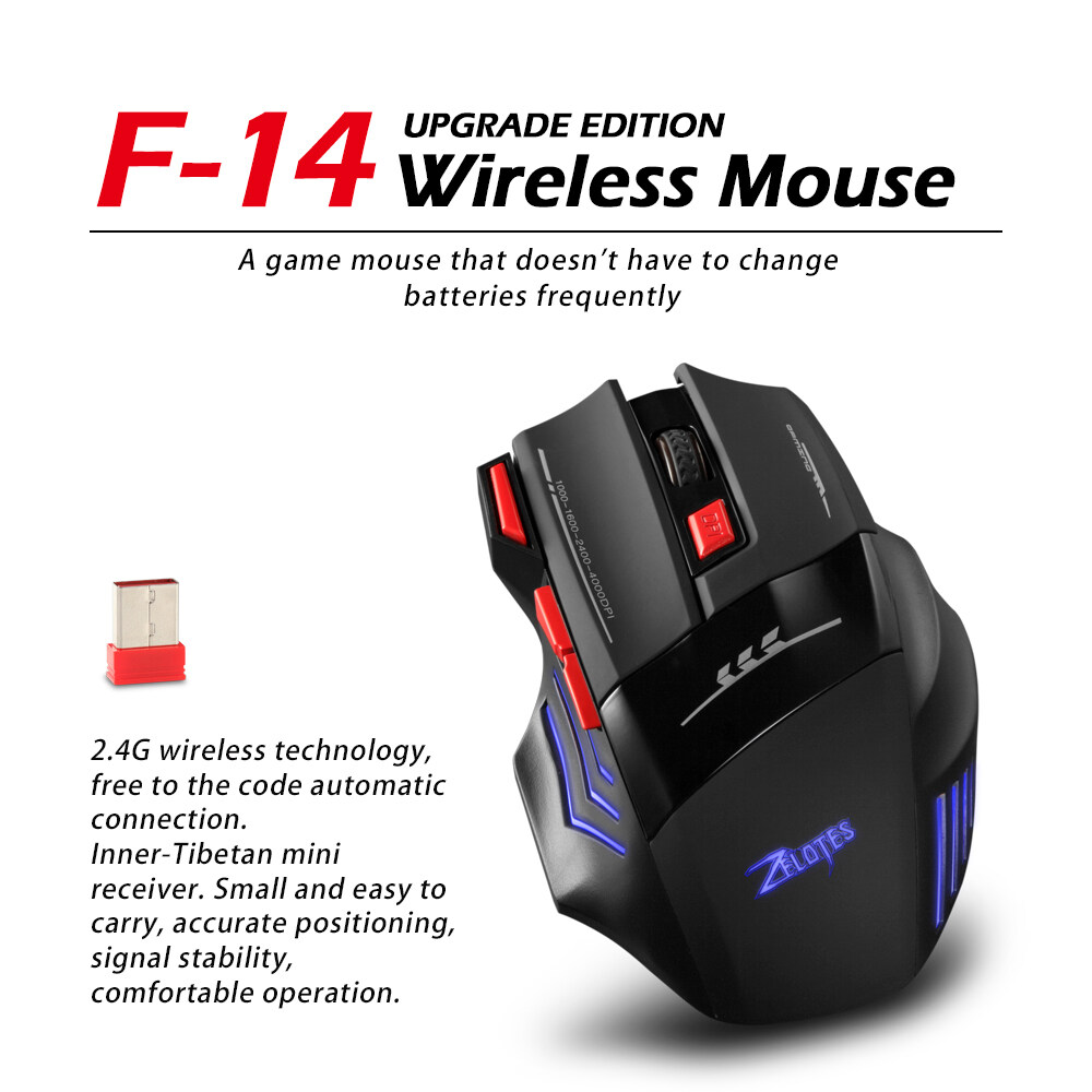 The Zelotes F-14 Wireless Mouse (Upgrade Edition) features 2.4G wireless technology, free to the code automatic connection. Small and easy to carry, with accurate positioning, signal stability, comfortable operation.